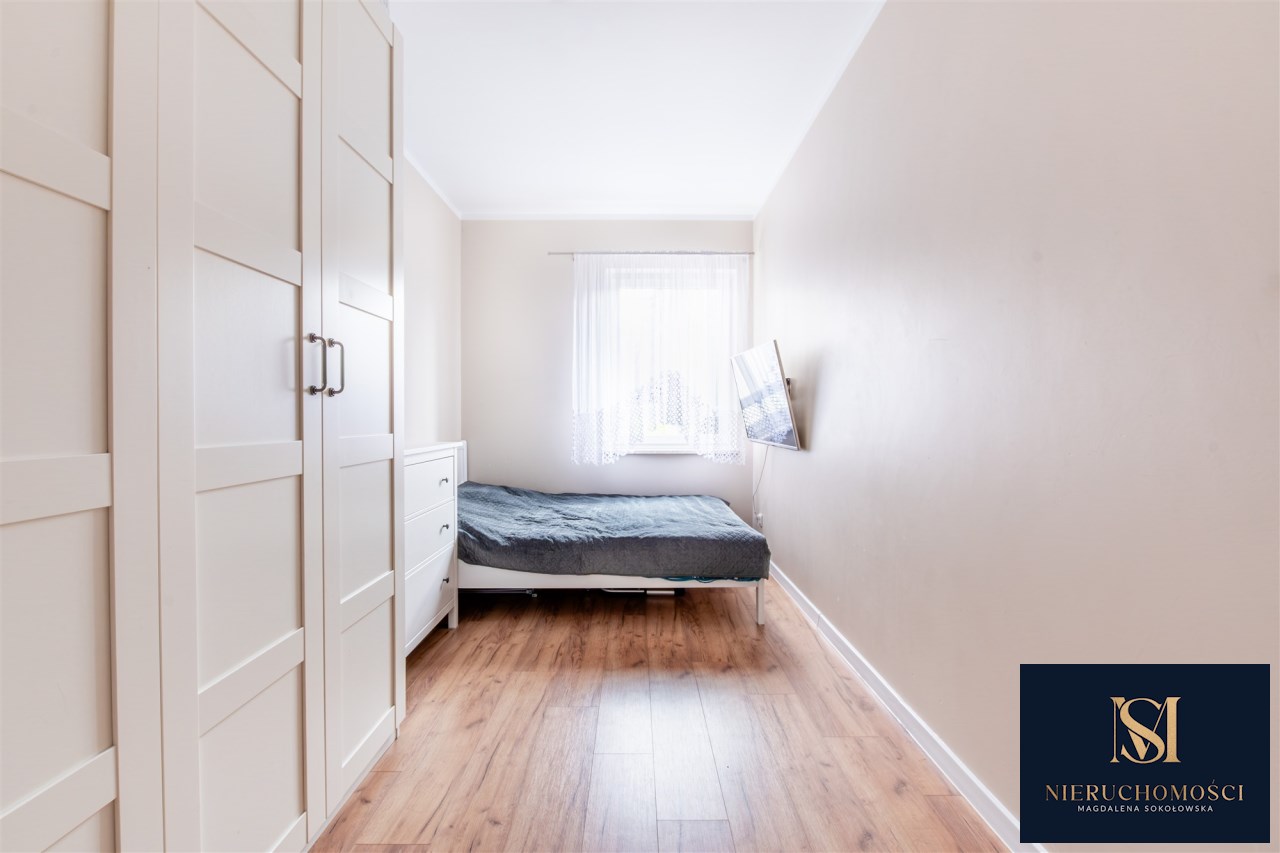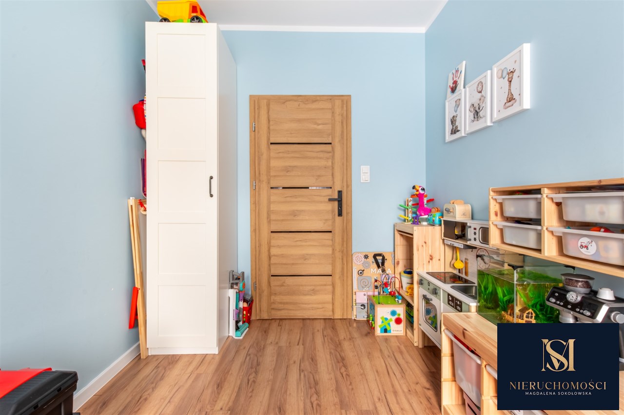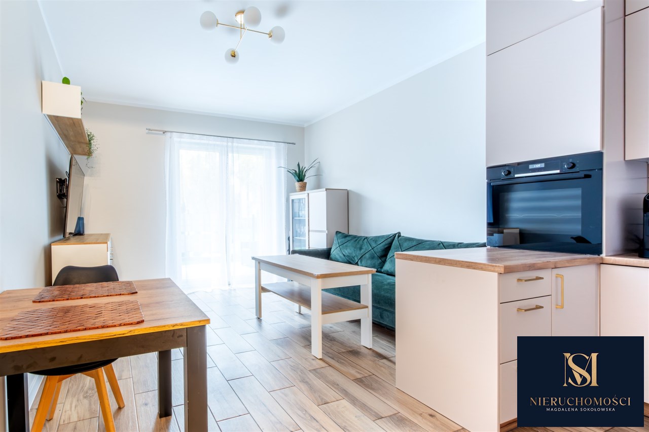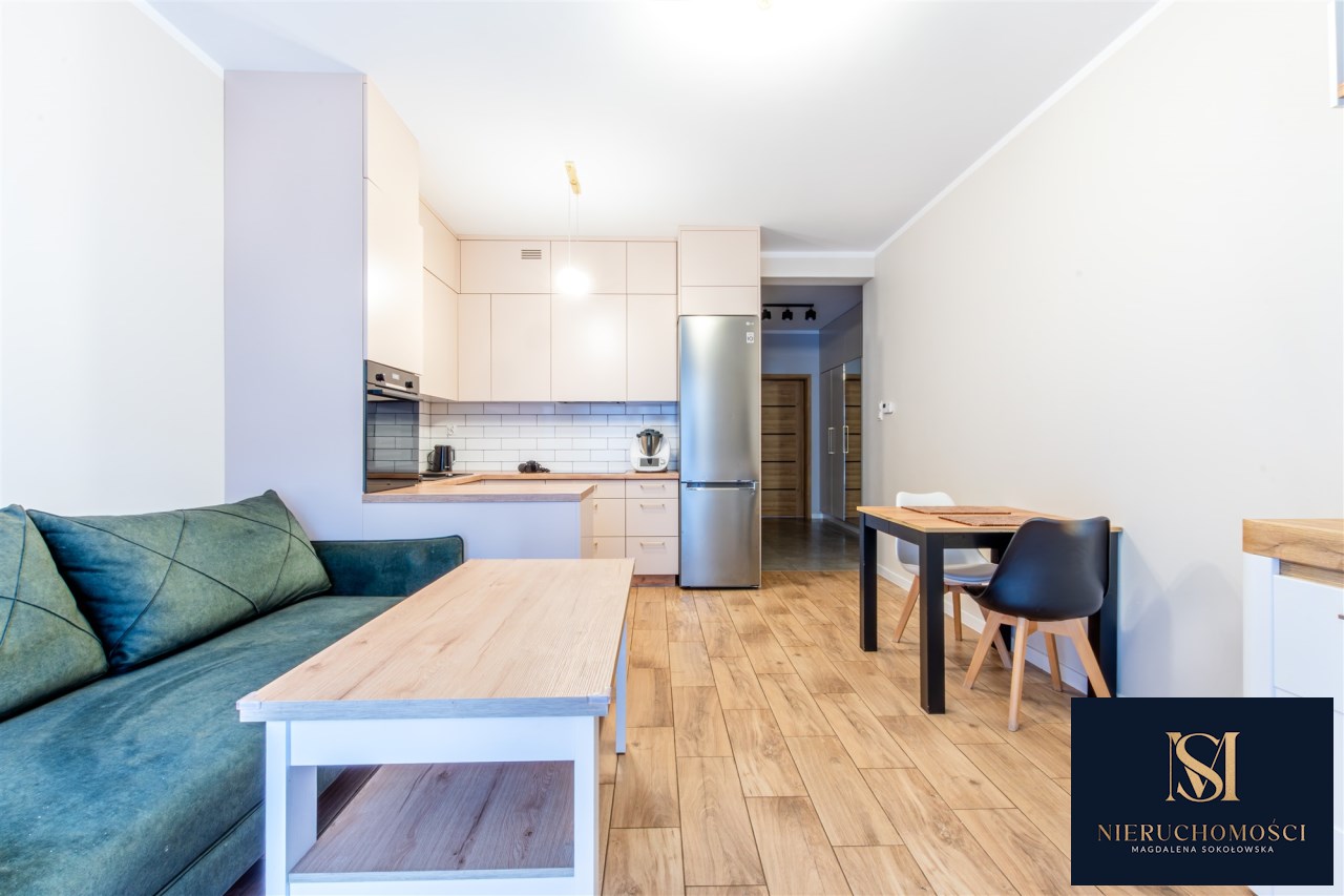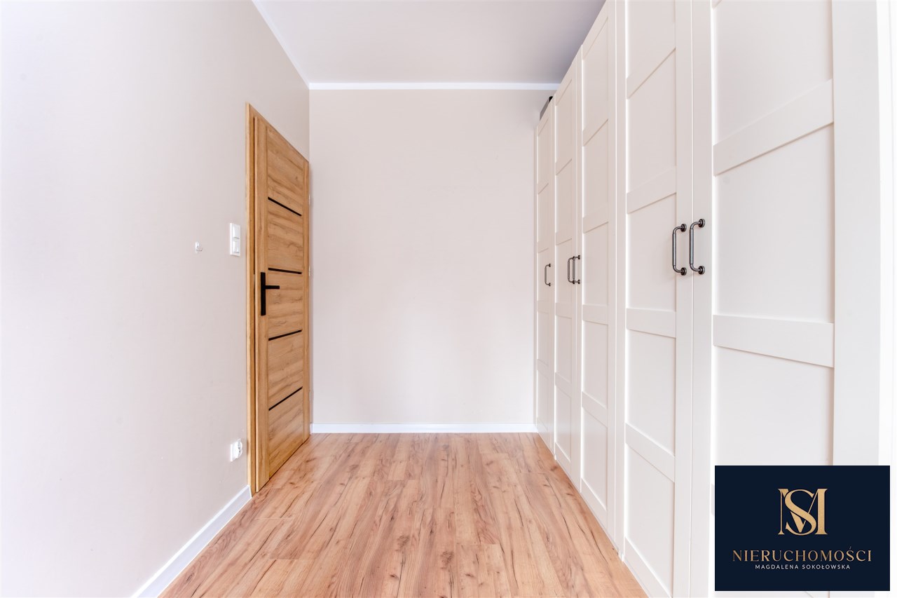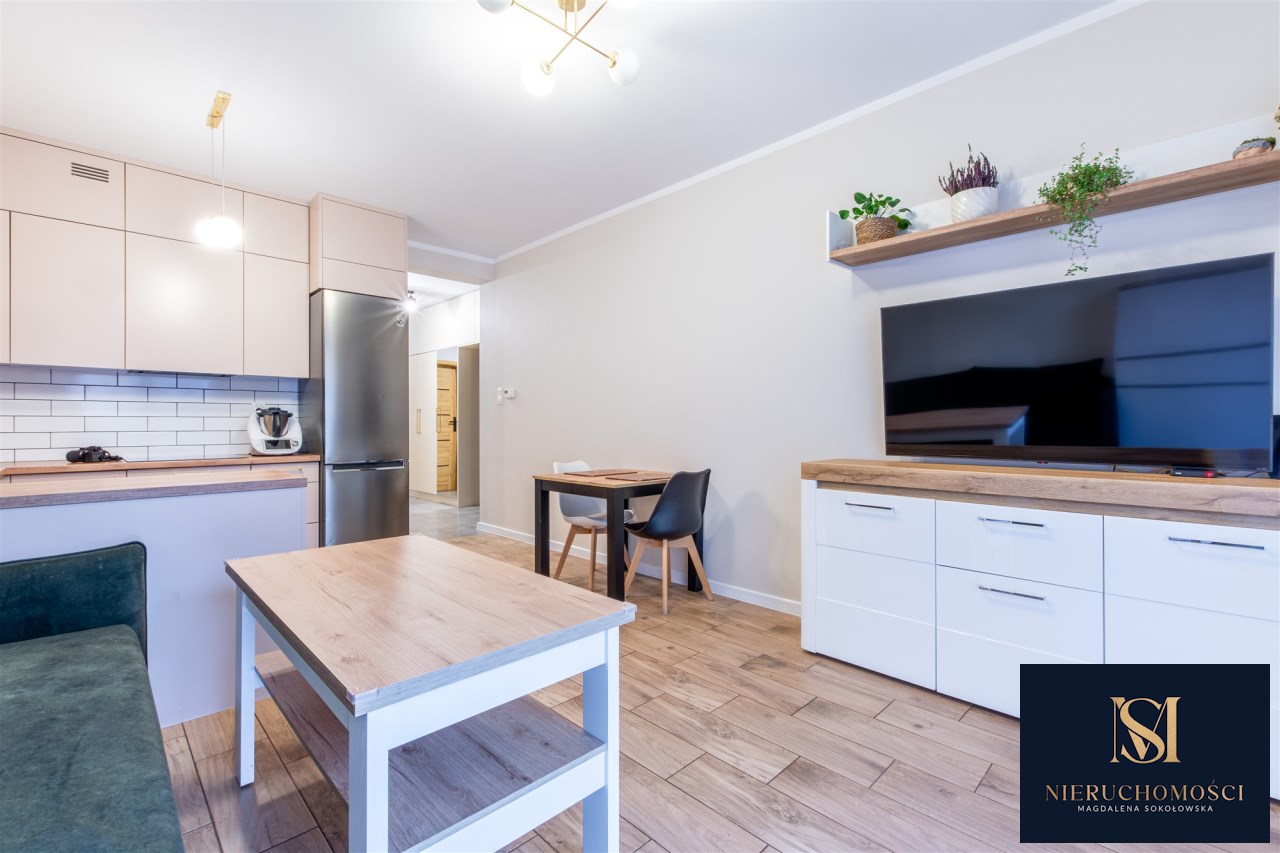 Mieszkanie wyposażone zostało w kuchnię wraz z sprzętem AGD (lodówko-zamrażarka, zmywarka, kuchenka elektryczna, płyta indukcyjna, pochłaniacz), wykonaną na wymiar dzięki czemu idealnie wpasowuje się w przestrzeń i w pełni spełnia swoją funkcjonalność. Łazienka została urządzona w nowoczesnym stylu, zaopatrzona w wannę, miejsce na pralkę oraz suszarkę. W przedpokoju zamontowano pojemną szafę w zabudowie.