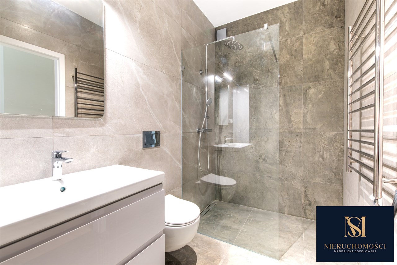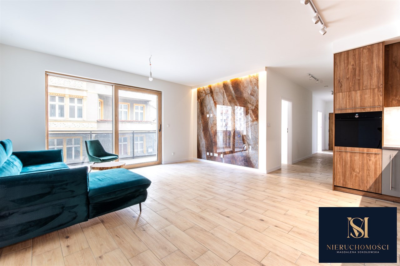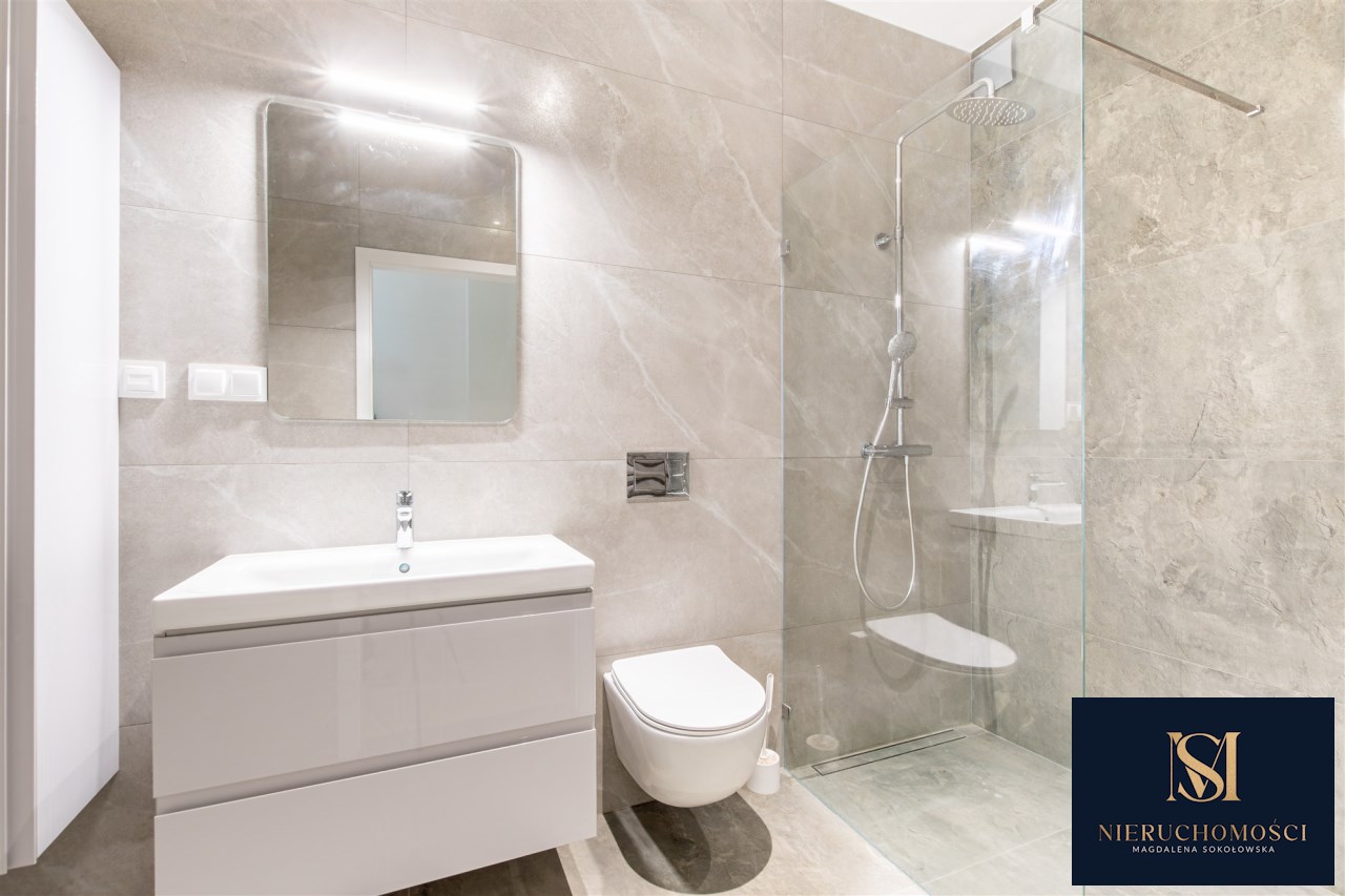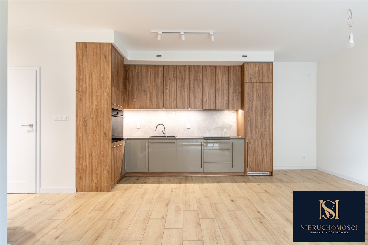 Lokal ma powierzchnie 68,63 m2, przynależy do niego miejsce postojowe w podziemnej hali garażowej- dodatkowo płatne. Nieruchomość została wykończona z dbałością o detale- w całym mieszkaniu położone są podłogi, a łazienka oraz kuchnia są w pełni wyposażone i gotowe do użytkowania. Kuchnia została wykonana na wymiar przez stolarza z wysokiej jakości materiałów i wyposażona w sprzęt AGD, co zapewnia komfort codziennego użytkowania oraz estetyczny, spójny wygląd wnętrza.