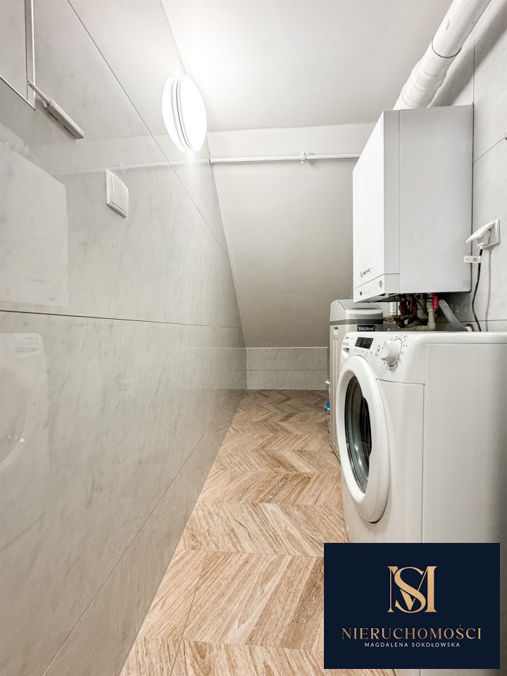 Dodatkowym atutem jest przynależny do mieszkania ogród o powierzchni 550 m2 z system automatycznego nawadniania oraz koszenia.